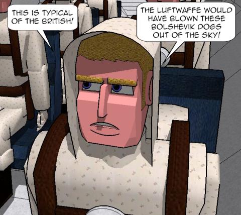 Contains comic violence plus Nazi images as humor/parody, not suitable for minors or those easily offended.
