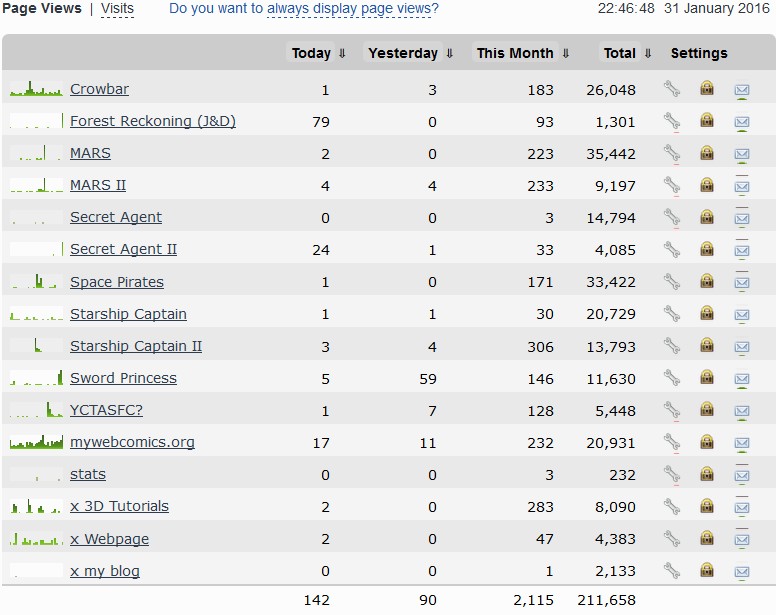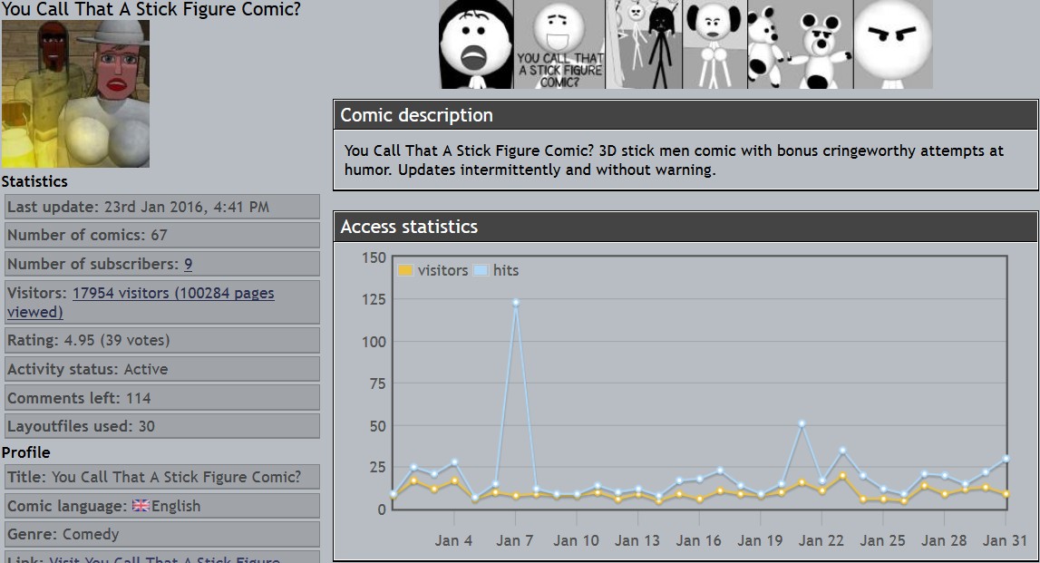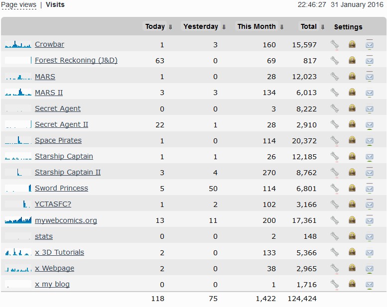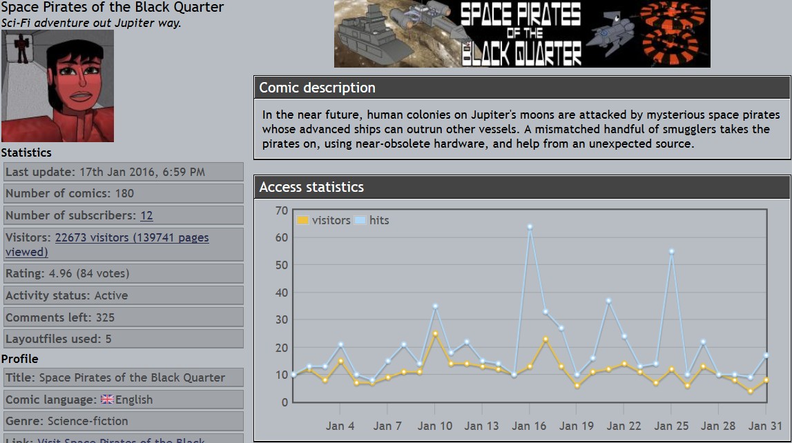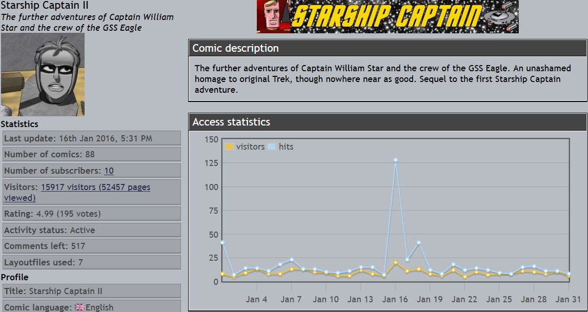 Derek's webcomics - stats snapshots - 31 Jan 16