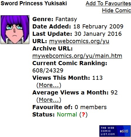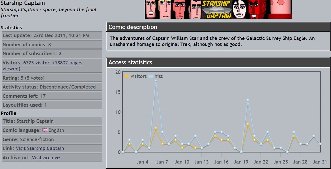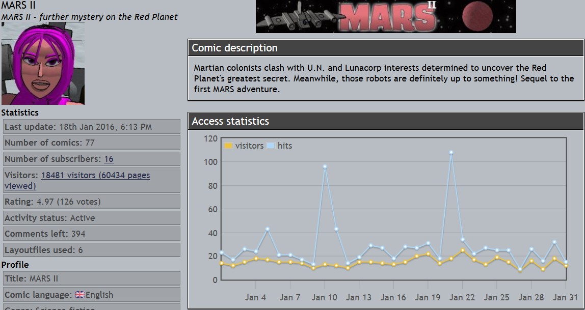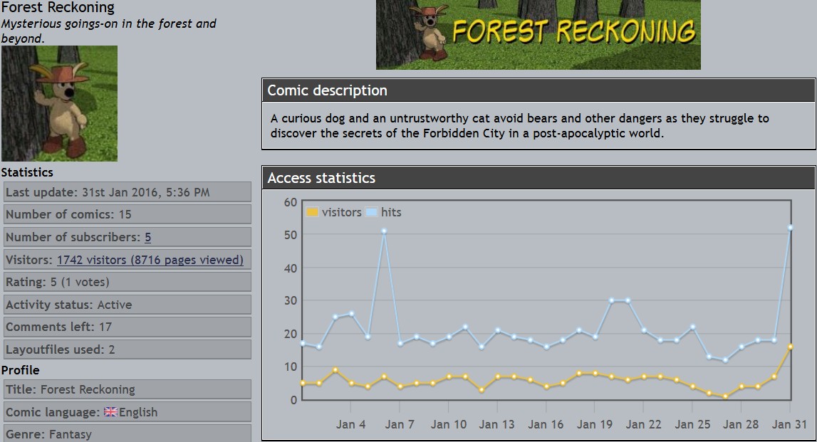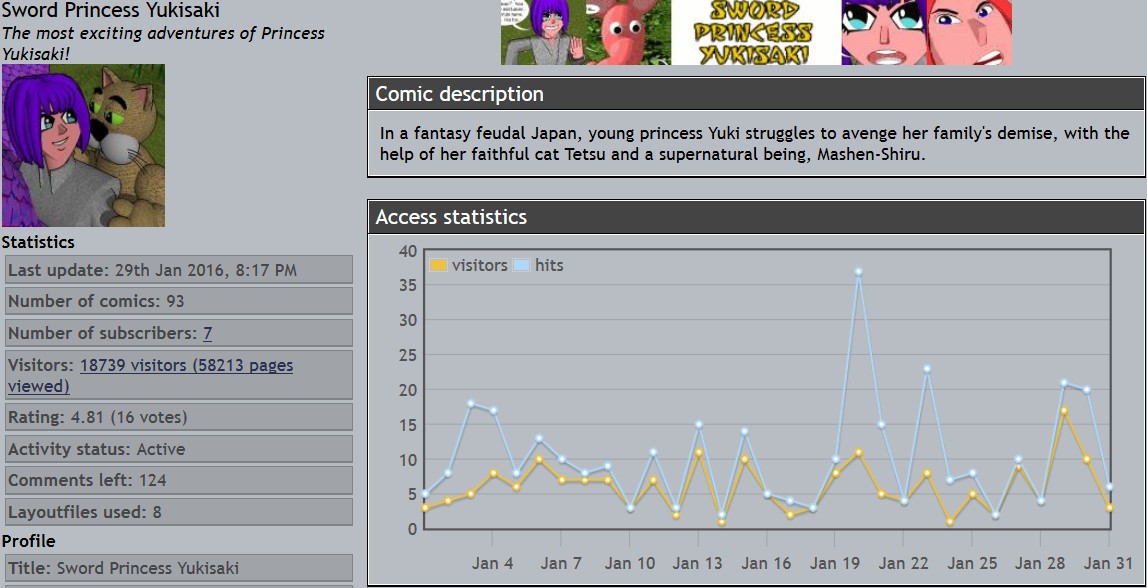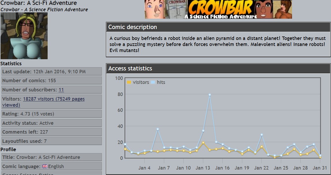 Derek's webcomics - stats snapshots - 31 Jan 16