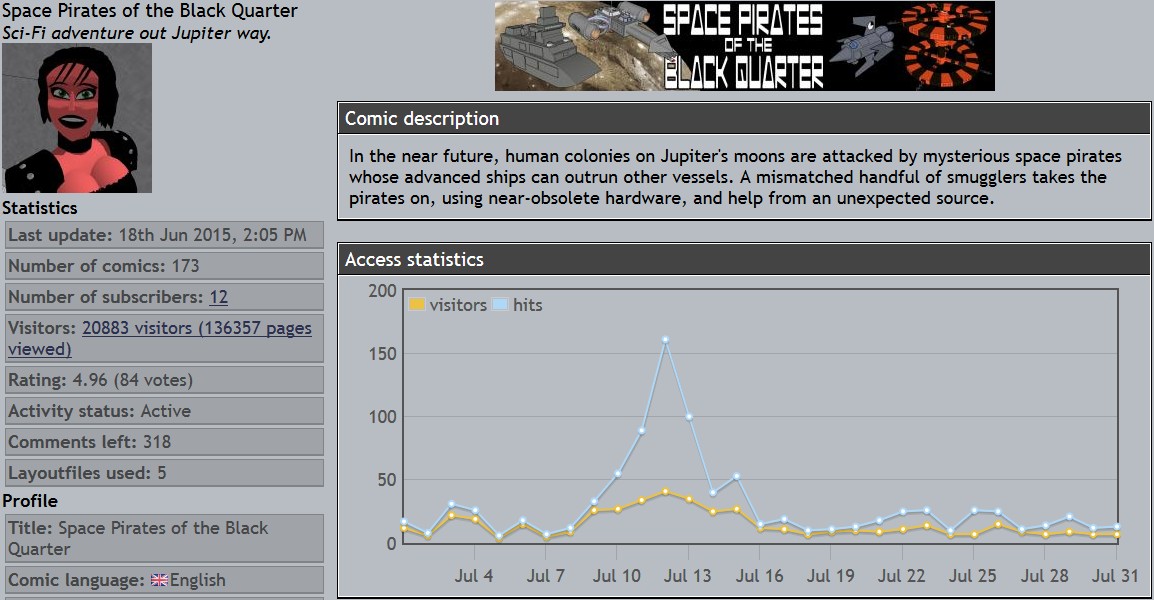 Derek's webcomics - stats snapshots - 31 Jul 2015