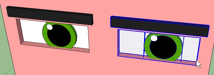 Just to give some perspective on what's been done so far... the eyes and eyebrows groups have been created, and because they're groups, they can be moved to approximate eye movement and expression!