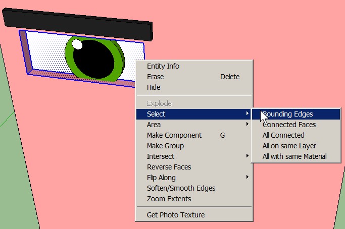 Right-click on the eye socket white surface again. From the pop-up menu, Select > Bounding Edges: