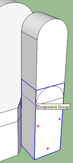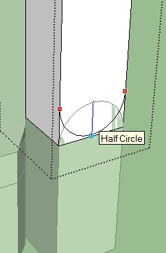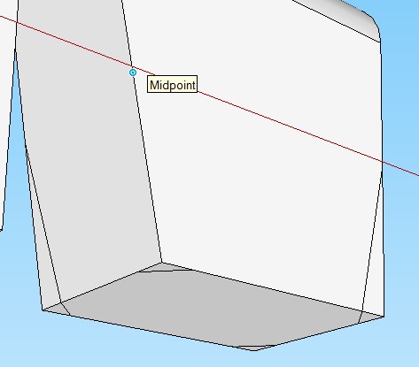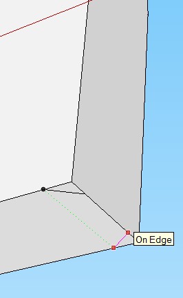 If you ever need to find a point exactly midway along any line, just move the cursor up or down or along the line until the "Midpoint" label appears. SketchUp calculates the midway point for you, making it easy to select the point.