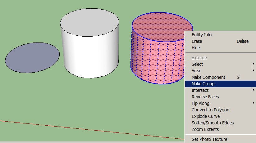 The NeckI started SketchUp and drew a circle, pulled it into a cylinder, painted the cylinder pink, then selected all the elements and made a group:
