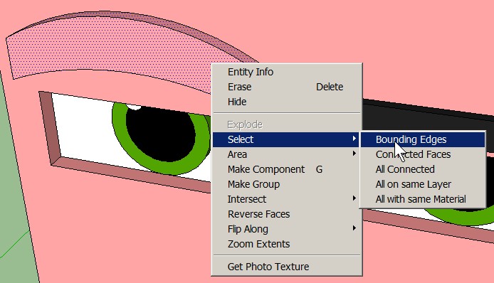 Right-click on the same surface of the eyebrow and Select > Bounding Edges: