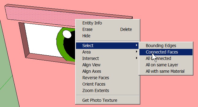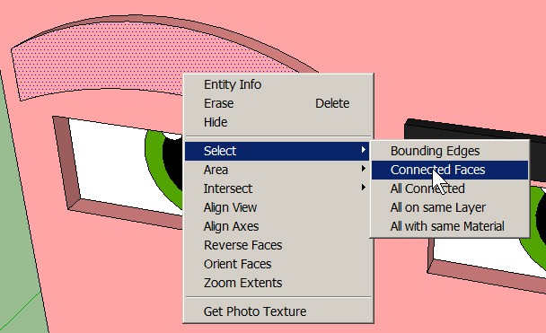 Right-click on the closest surface of the eyebrow and Select > Connected Faces: