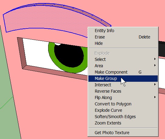 Right-click on the same surface of the eyebrow and select Make Group: