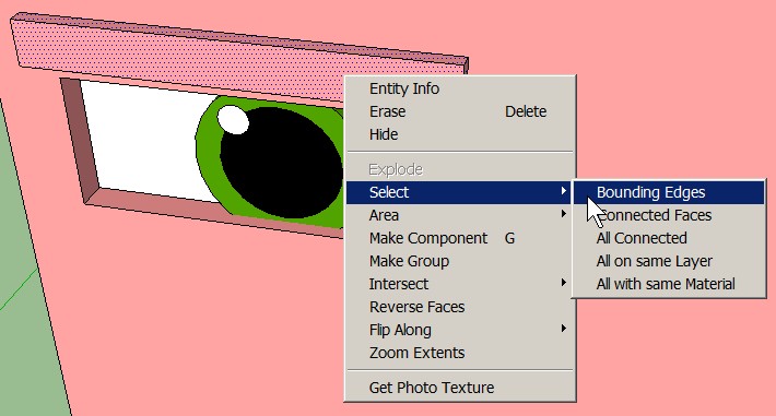 Right-click again on the same surface and Select > Bounding Edges from the pop-up menu: