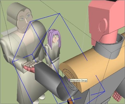 Note, the reverse is also true, sometimes you will need to see the rest of the model in order to relate elements to one another. In this snapshot from Sword Princess Yukisaki, I had to pose the characters so their hands were touching. I unticked Hide Rest Of Model so Lady Jondo was visible outside of the current group edit, and I could pivot Lord Jondo's arm into the right position. ![]()