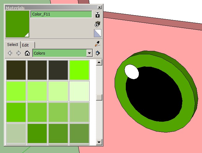 Choose a color for the eye, and select the "iris" surfaces to apply the color: