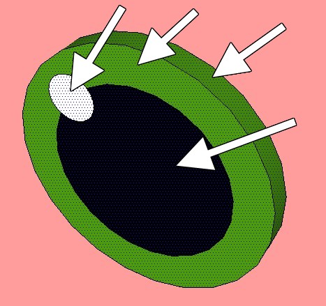Hold down the Ctrl key and select the elements that make up the eye, e.g. the iris front and rim, the white light spot, the black pupil: