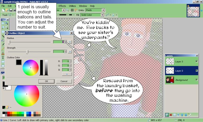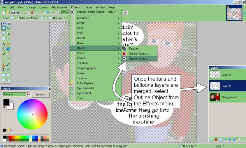 Step 5g, once the tails and balloons layers are merged, you'd maybe want to add an outline around them: