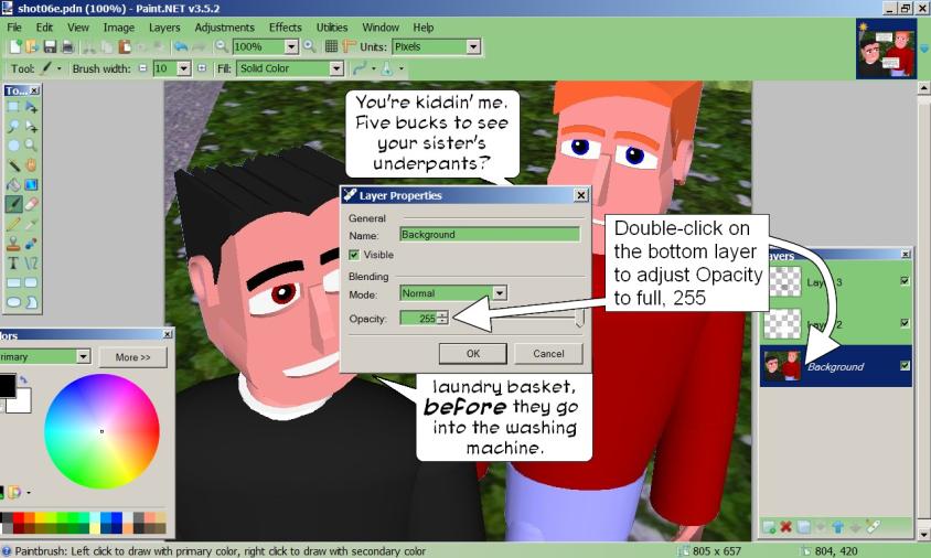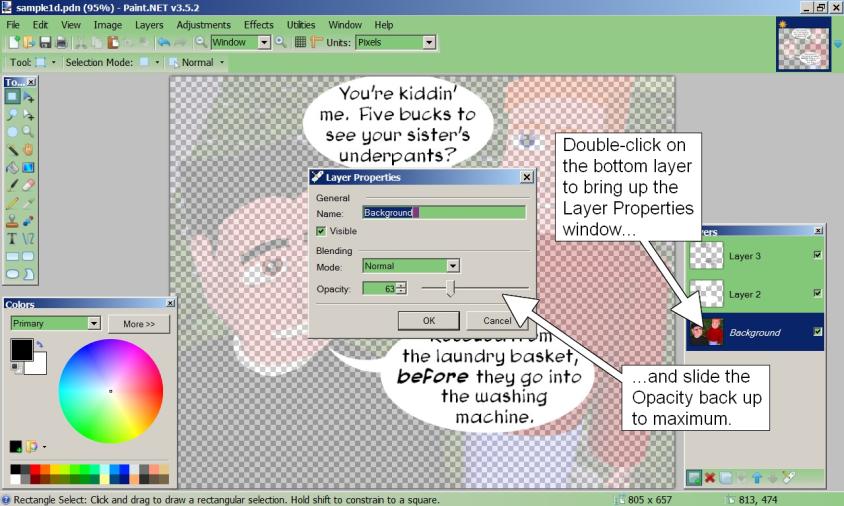 Step 5i, lastly, select Layer Properties and return the Opacity to full, 255: