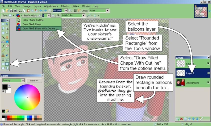Step 6, if on the other hand you prefer rounded rectangle balloons to oval balloons, here's a quickie guide, 'cause they're easier! Rounded rectangle balloons