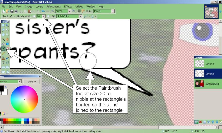 Step 5c, use the Paintbrush tool to add 2 white circles that will be trimmed (in the next step) to become the balloon tails: