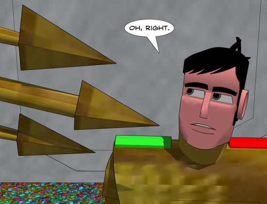 Dialogue and backgrounds added using Paint.NET Fonts by Blambot.com HTML hand-knitted by me, so you know who to blame. A Blockhead Adventure! |
