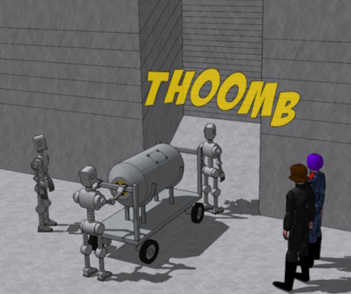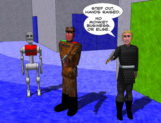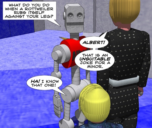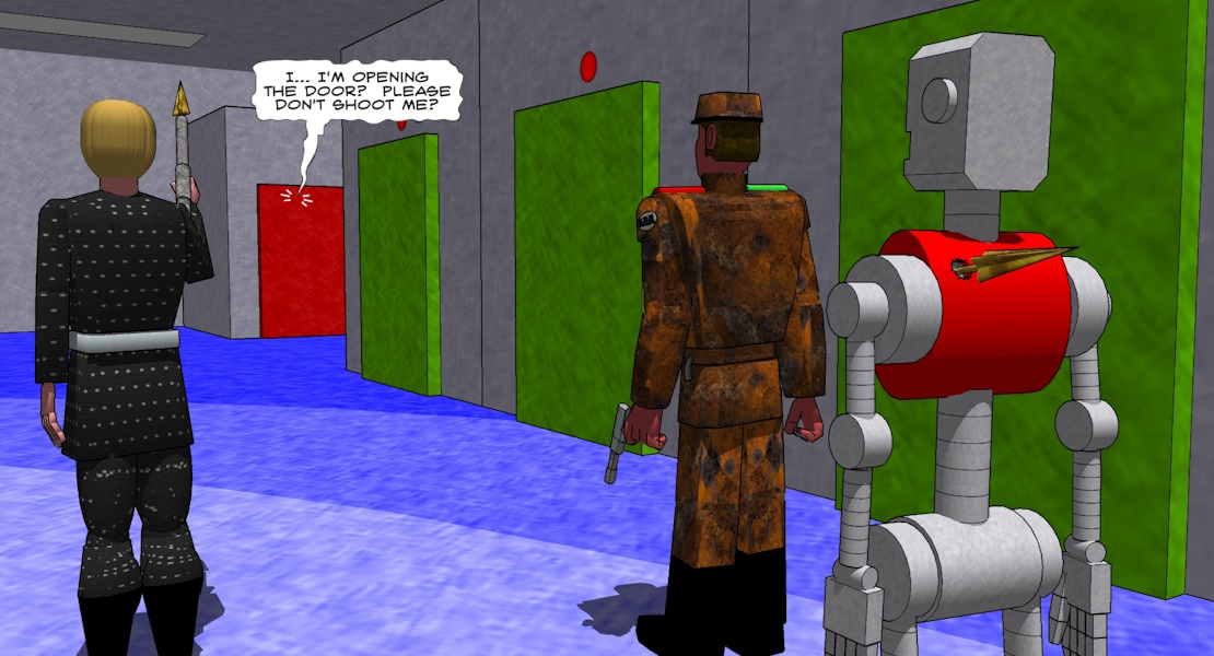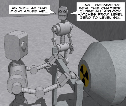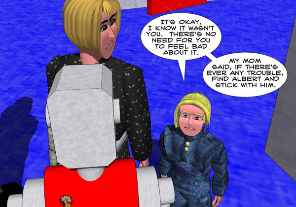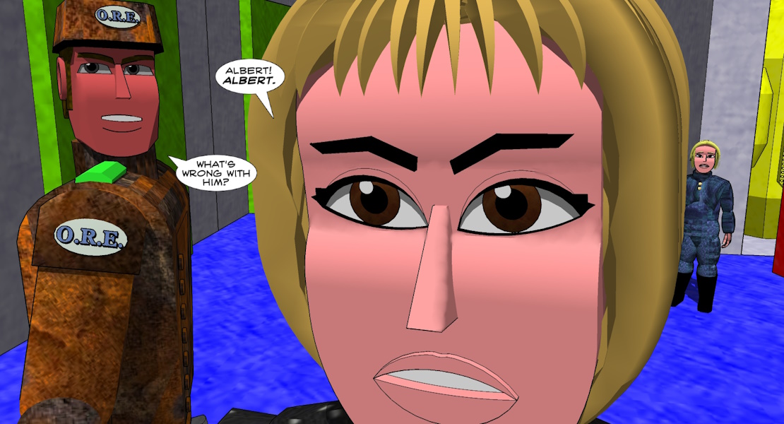 Dialogue and backgrounds added using Paint.NET Fonts by Blambot.com HTML hand-knitted by me, so you know who to blame. A Blockhead Adventure! |